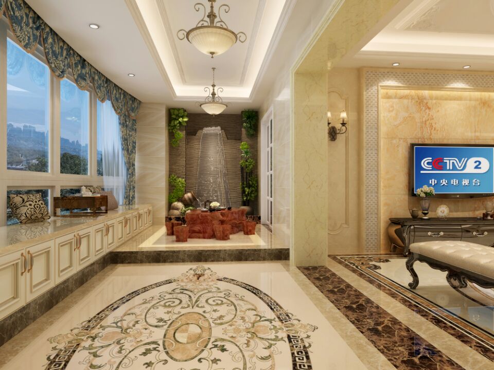 大理石,簡一大理石瓷磚,水刀平花,實木木工板,石膏板吊頂,多樂士乳膠漆。