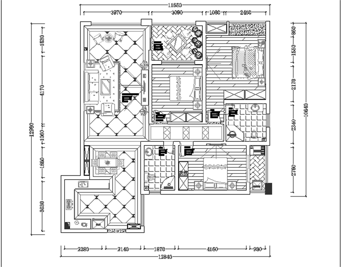 簡一大理石瓷磚,水刀平花,實木木工板,石膏板吊頂,多樂士乳膠漆。