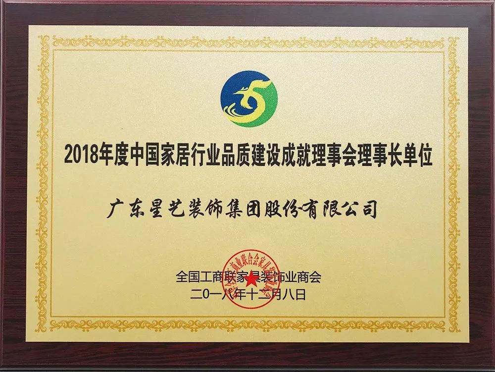 星藝裝飾當選2018年度中國家居行業品質建設成就理事會理事長單位