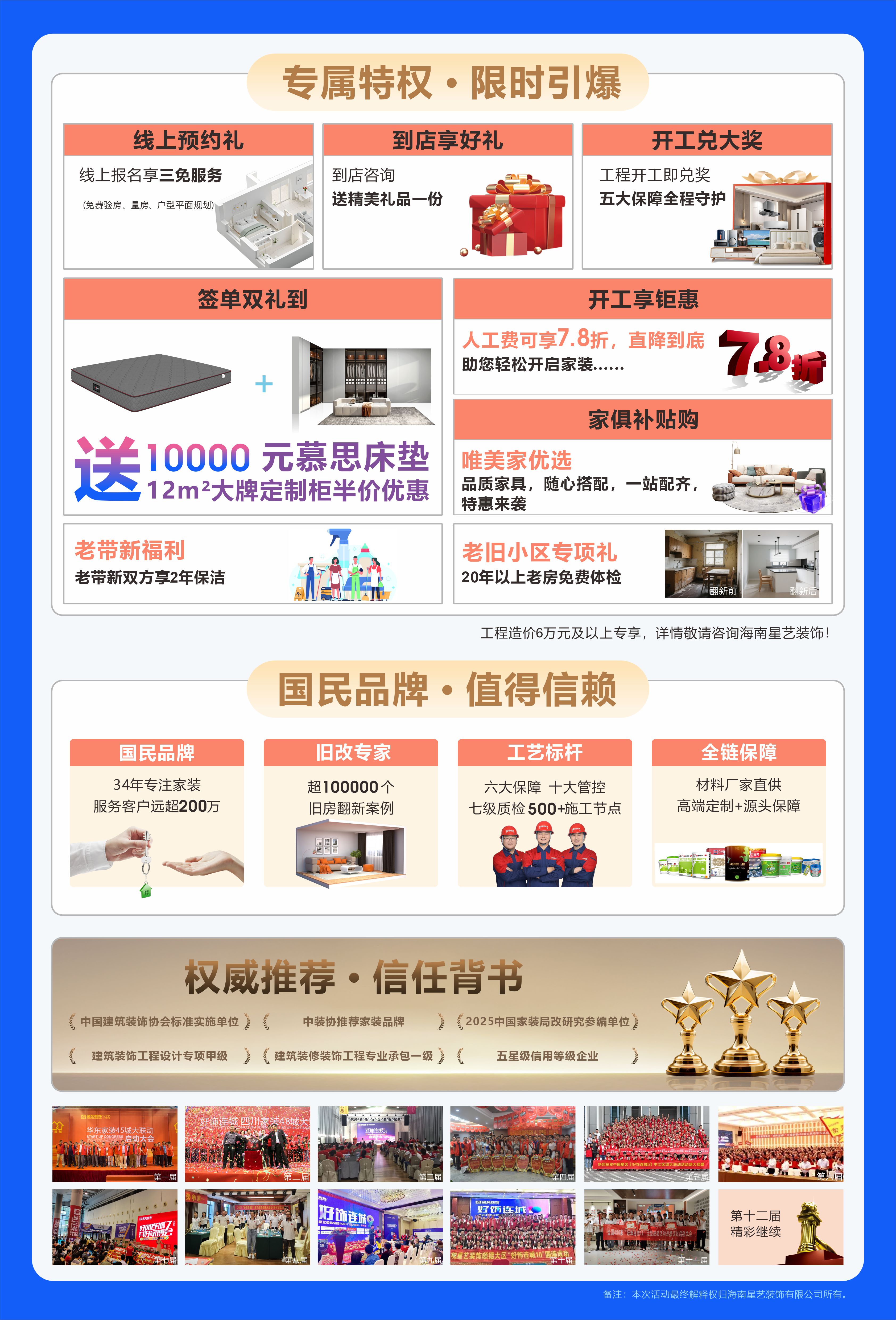 這不是一場(chǎng)簡(jiǎn)單的促銷,這是我們星藝人用34年的匠心與擔(dān)當(dāng),向“行業(yè)亂象”發(fā)出的宣言,更是向全國(guó)業(yè)主發(fā)出的“安心裝修”的鄭重邀請(qǐng)!我們所做的一切,只為您能放心地把家交給我們。
