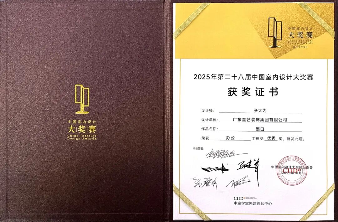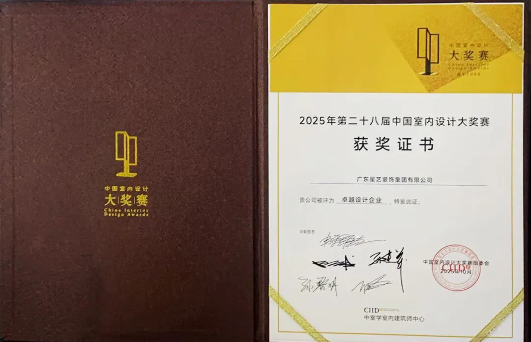 星訊 | 星藝裝飾榮膺2025CIID第二十八屆中國室內(nèi)設(shè)計大獎賽“卓越設(shè)計企業(yè)”