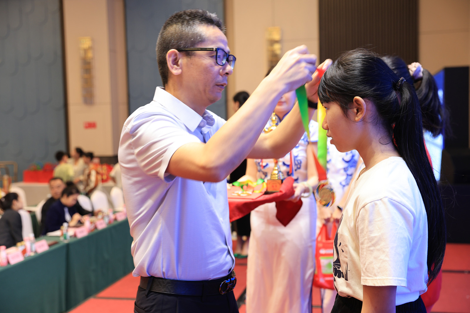 為獲獎選手頒發獎杯和證書